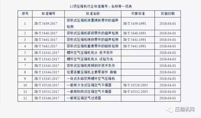 2017年 第48號中華人民共和國工業(yè)和信息化部公告,工業(yè)和信息化部批準發(fā)布了壓縮機行業(yè)標準12項,具體內(nèi)容見下表。